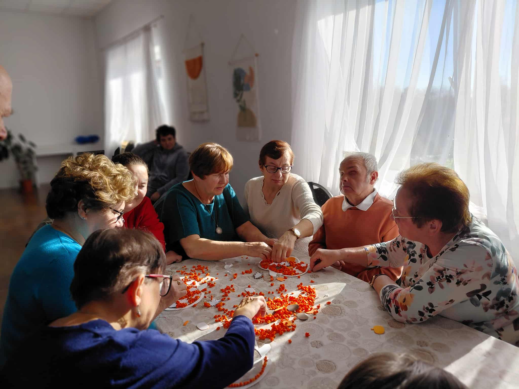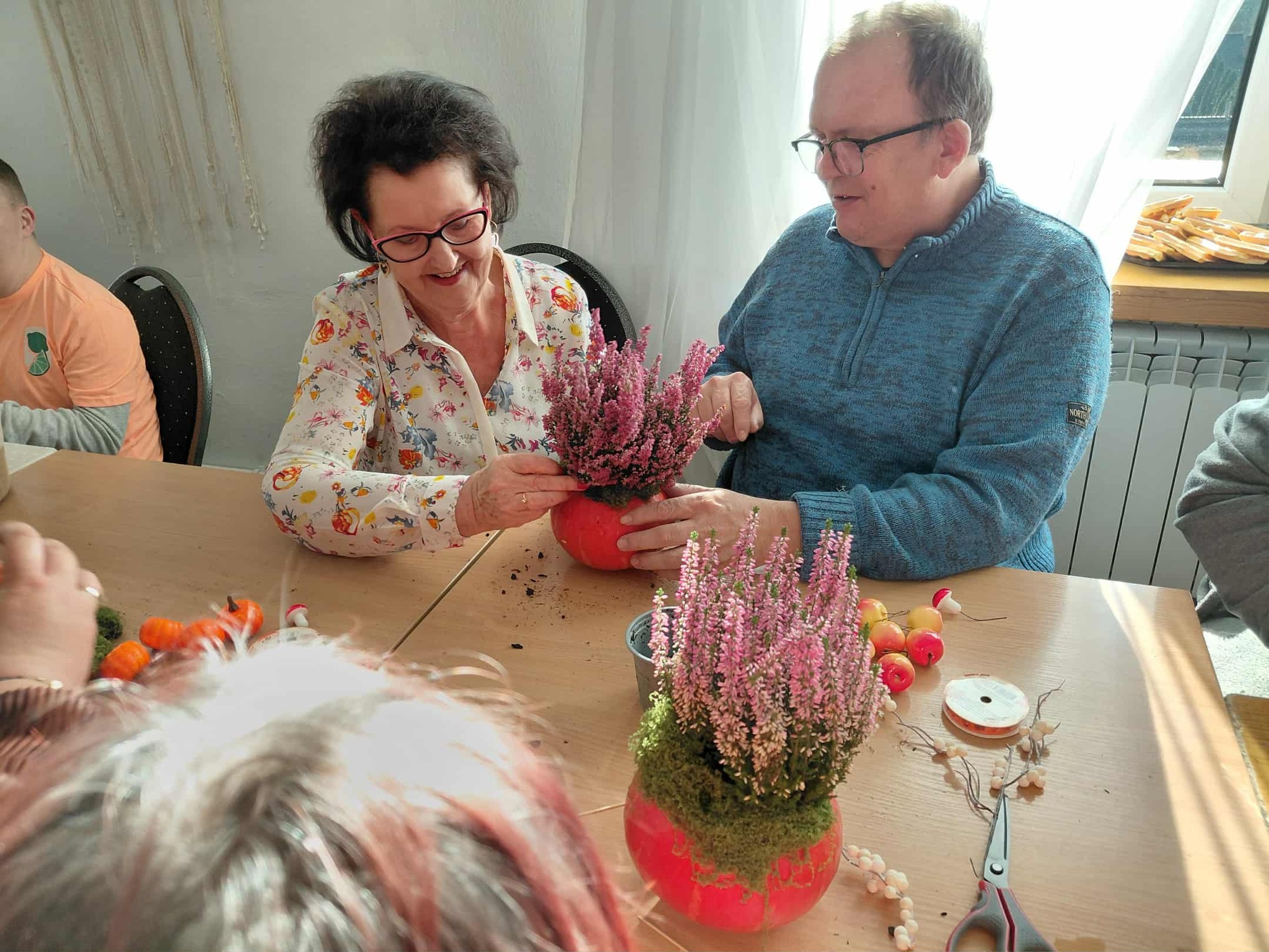 Podczas warsztatów manualnych uczestnicy pracowali z wykorzystaniem dyni, tworząc dekoracje, kompozycje oraz drobne prace artystyczne. Tego typu zajęcia stanowią nie tylko formę twórczej zabawy, ale również wspierają rozwój zdolności manualnych, kreatywności oraz sprzyjają budowaniu relacji międzypokoleniowych.
